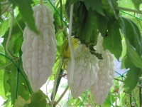 珍しい白ゴーヤも豊作です。待ち切れずに味見を致しました。