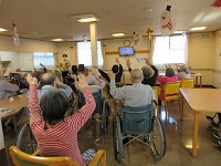 先日、レクリエーションで動画を見ながら音楽に合わせて体を動かしたり、早口言葉などを行いました
