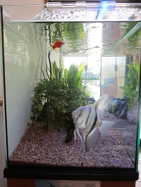 エンゼルフィッシュは餌をくれると思っているのか、毎回近寄って来てくれます
