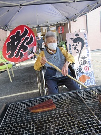 外で焼いているうなぎを見て頂いてから、涼しい施設内で甘酒を楽しんで頂きました
