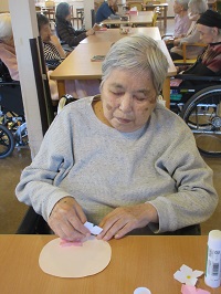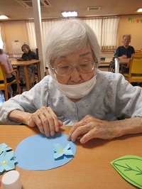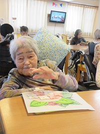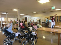 身体を伸ばしたり、童謡を歌いながら脳トレをしたりしました。