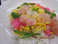 昼食もこどもの日お祝いメニューで、散らし寿司・けんちん汁・がんも煮・フルーツでした。
