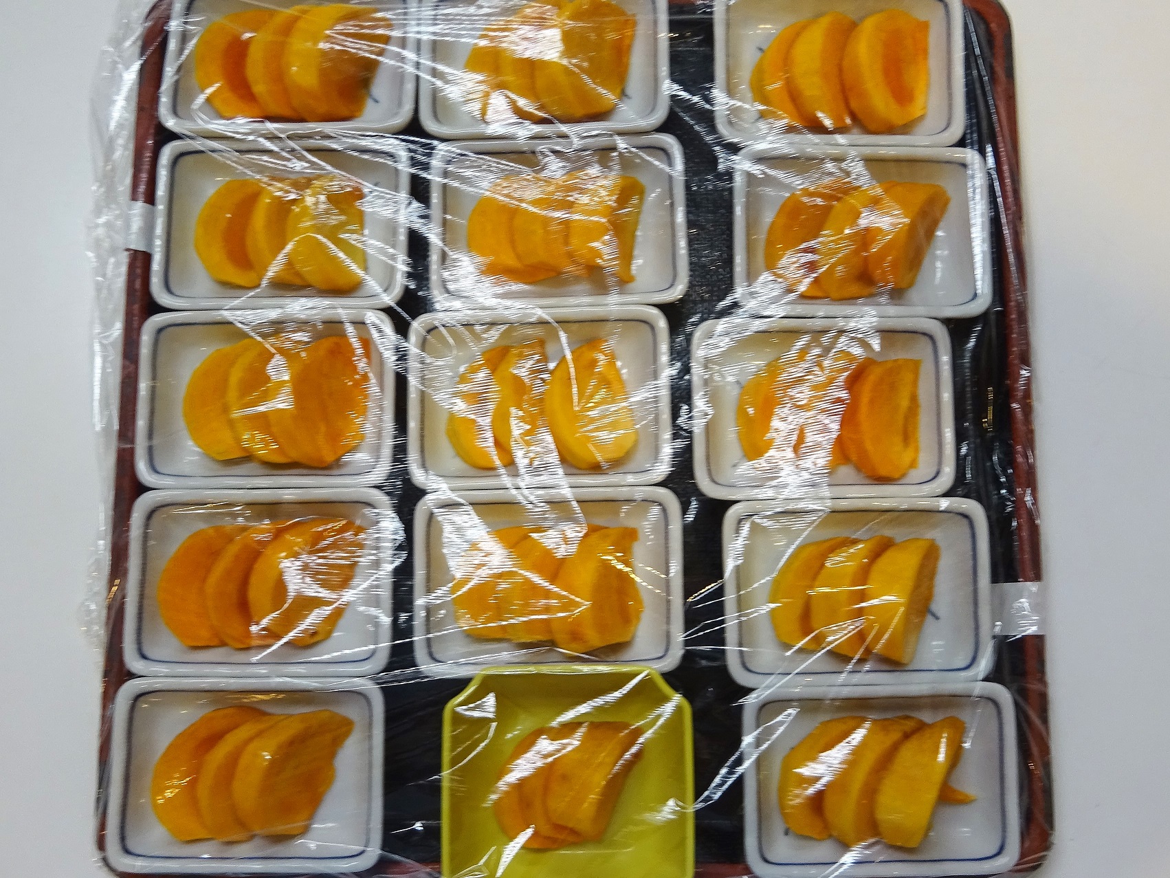 先日のおやつは『もみじ饅頭』と入居者様のご家族様よりいただいた『柿』。