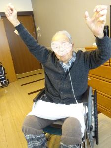 ホールで行う体操の前に、お部屋で準備体操をなさっているとのことでした。