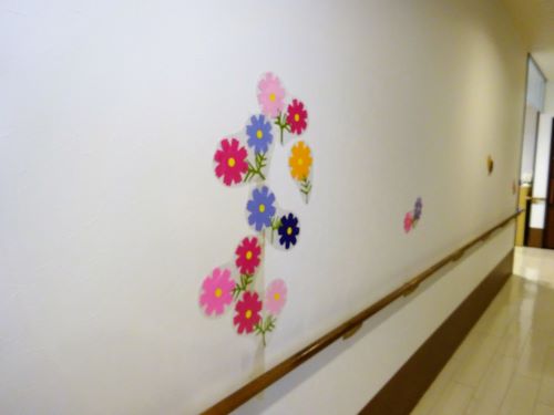 かわいらしいコスモスを入居者様も気に入ってくれてくださっております。