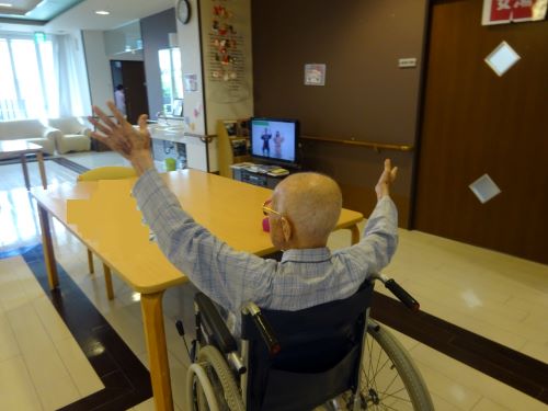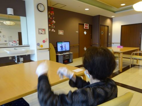 昼食の前に入居者様からのリクエストで体操をおこないました♪