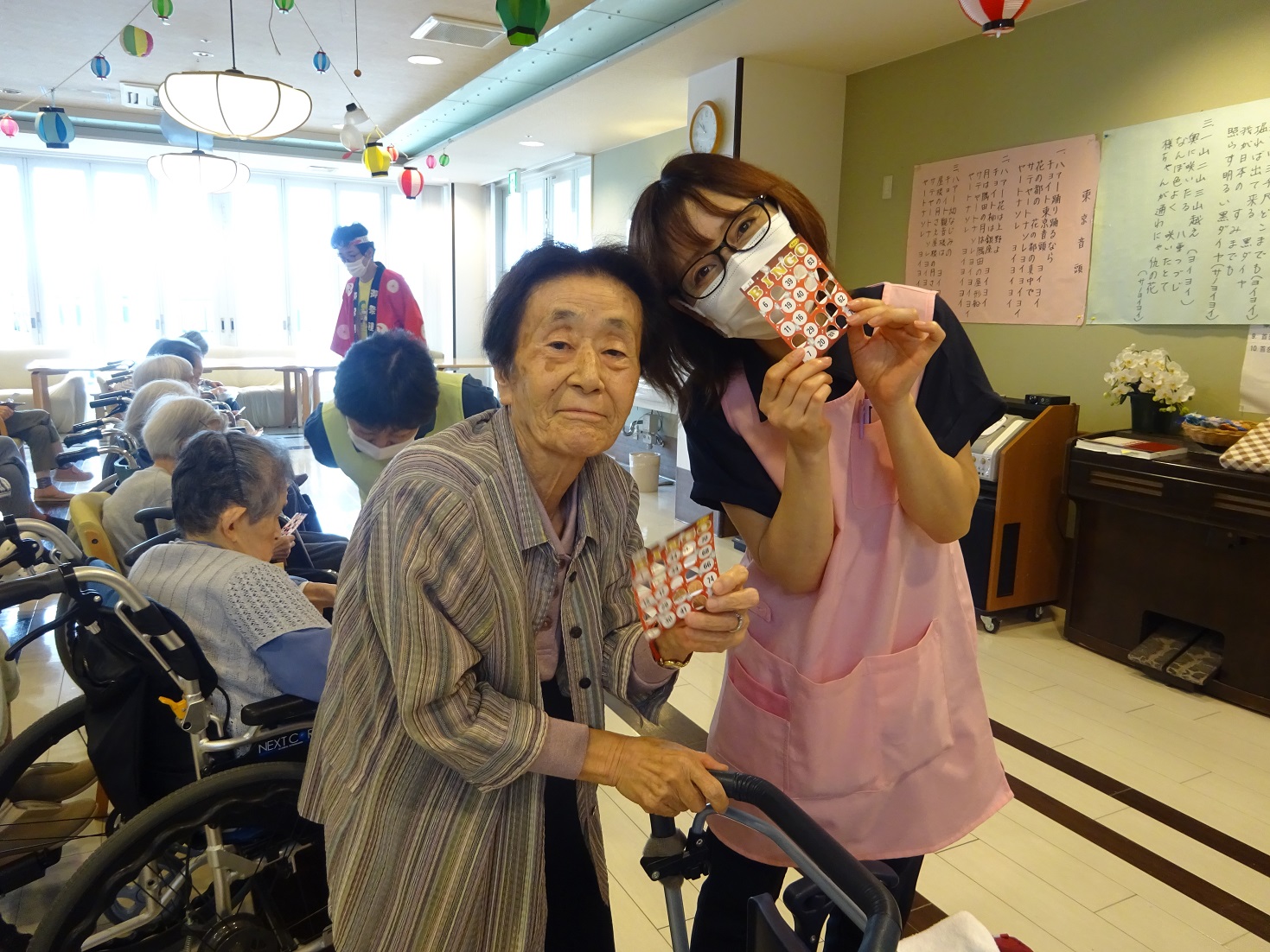 仲良く一緒にビンゴのお2人🎶写真は恥ずかしいとのことで職員が一緒に(⋈◍>◡<◍)。✧♡
