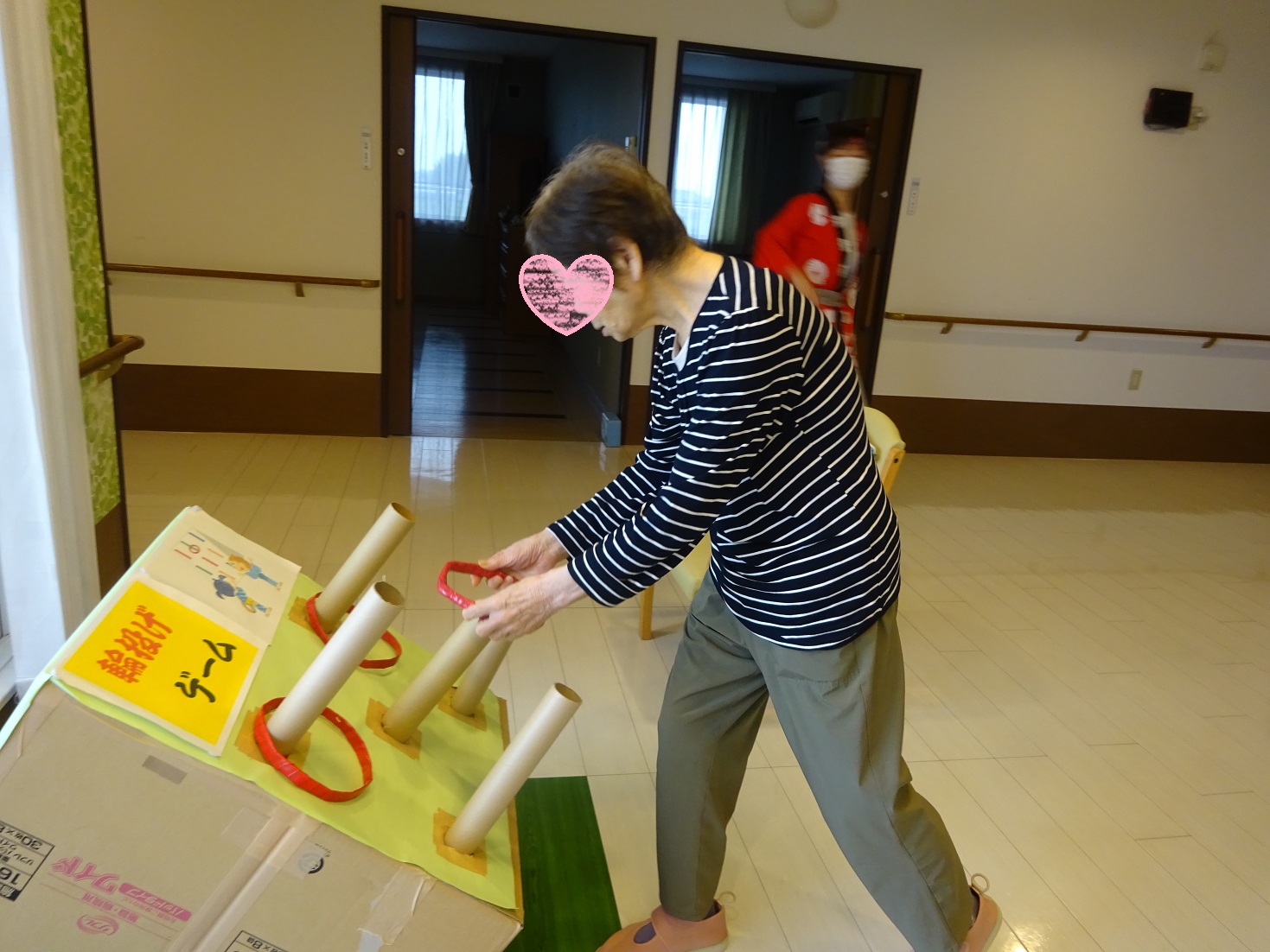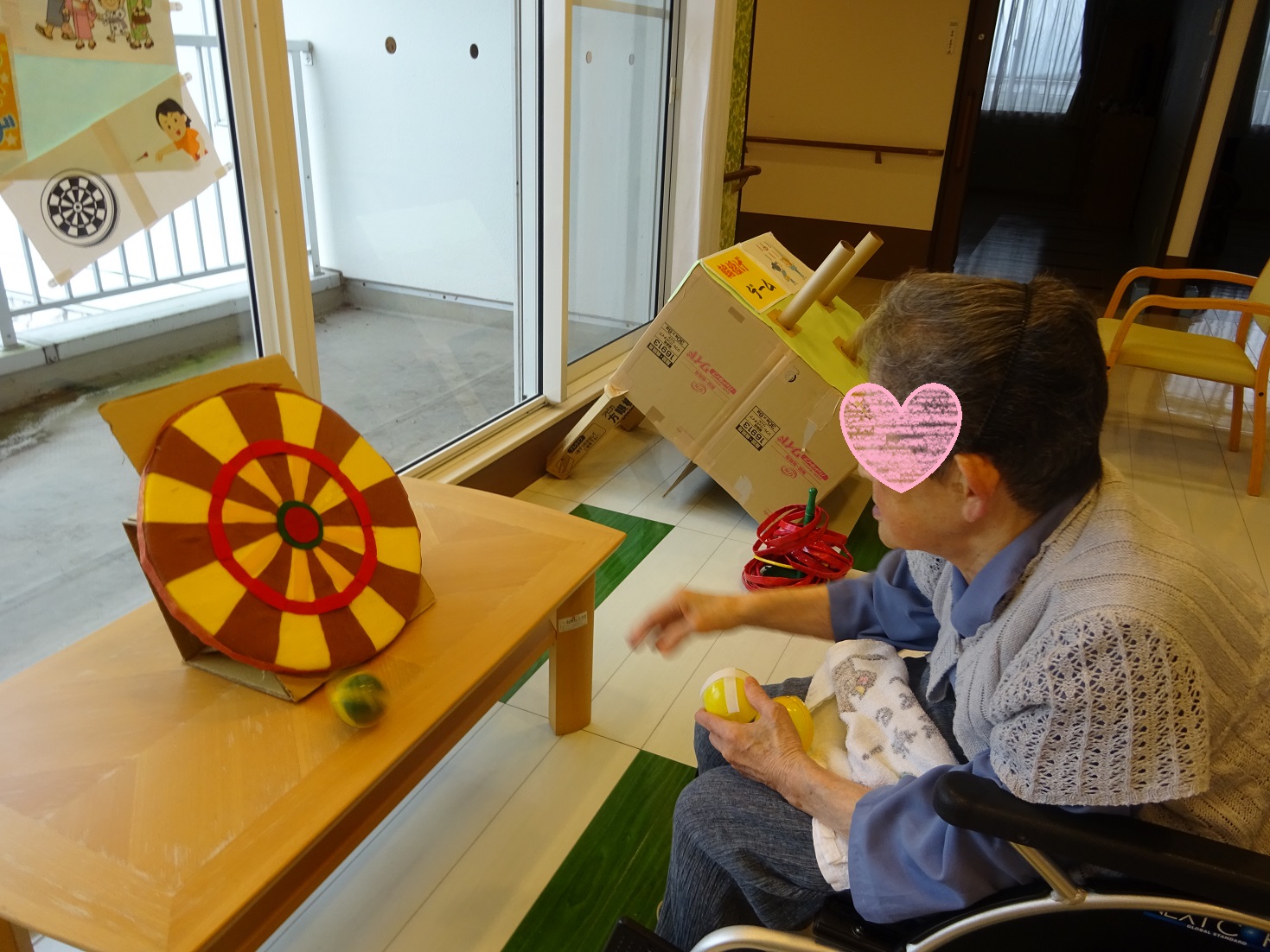 高校球児かオリンピック選手か⁉くらいのキレイなフォームで的当てする入居者様も(⋈◍>◡<◍)。✧♡