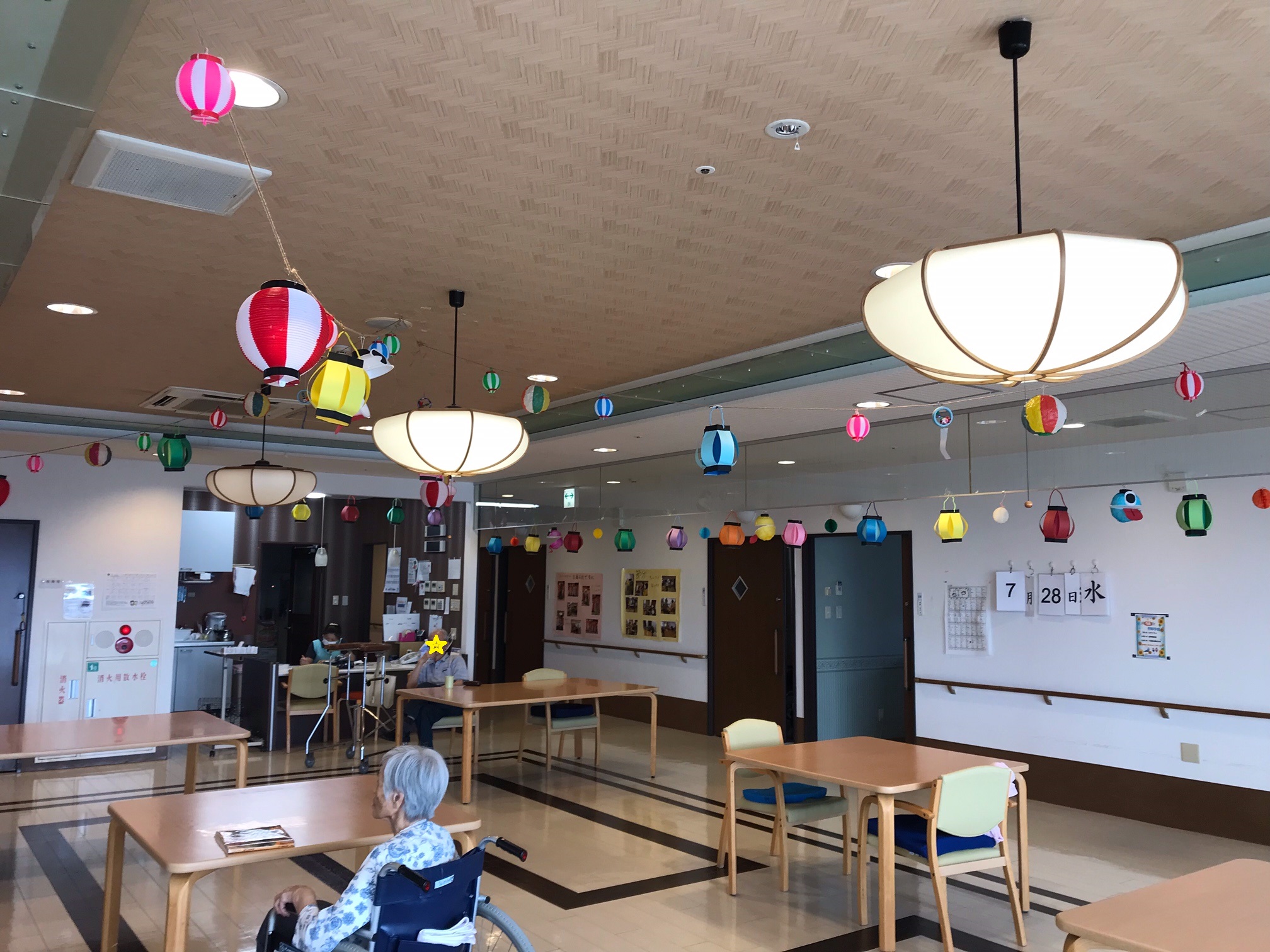 提灯で飾られたホールに入居者様もウキウキしております(⋈◍>◡<◍)。✧♡