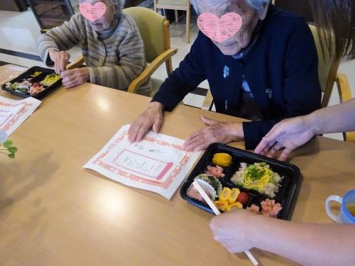 お品書きと彩り豊かなお弁当に入居者様もご満足いただけたようです。