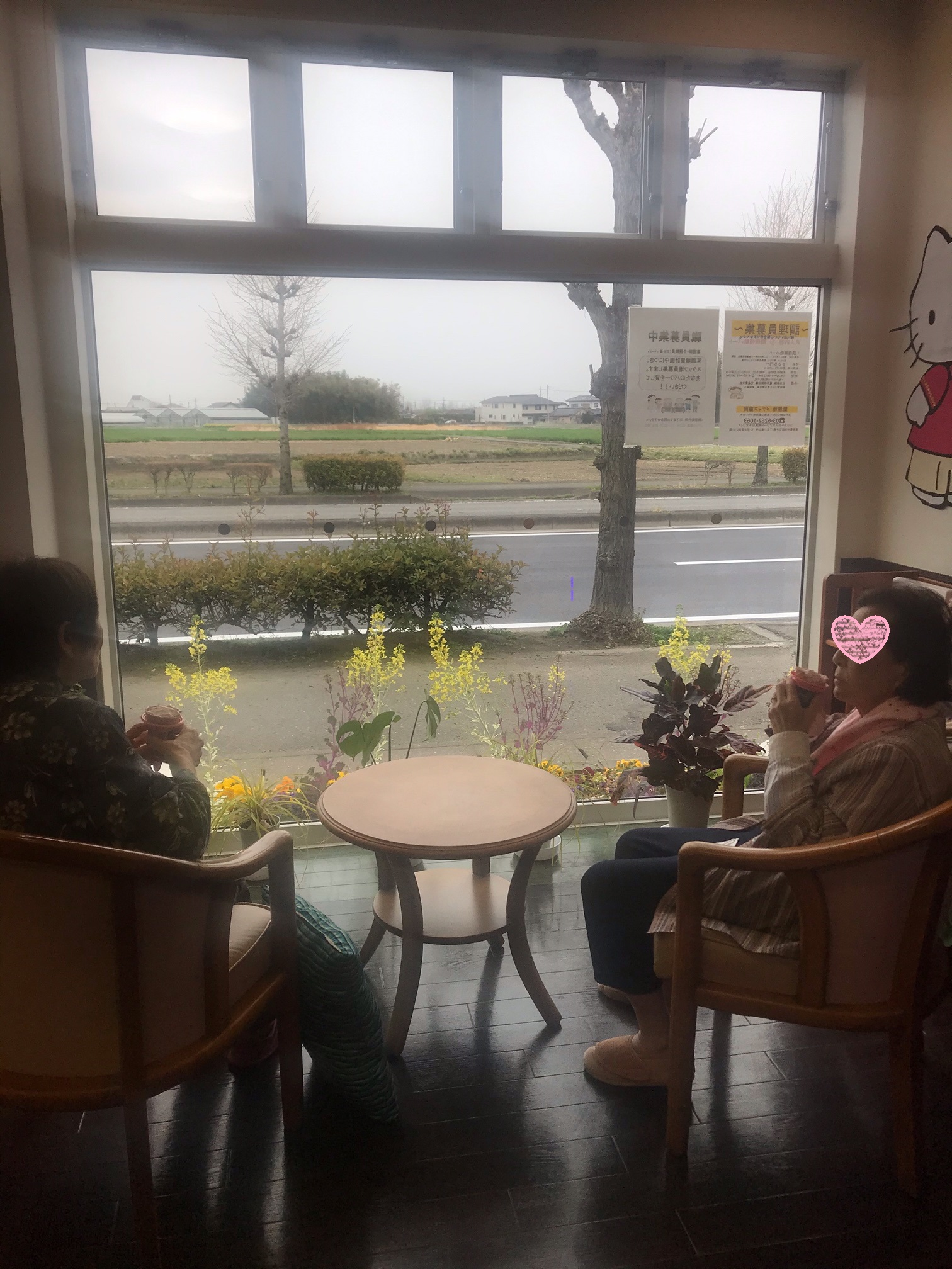 2階の談話コーナー。大きな窓から山々が良く見えます。