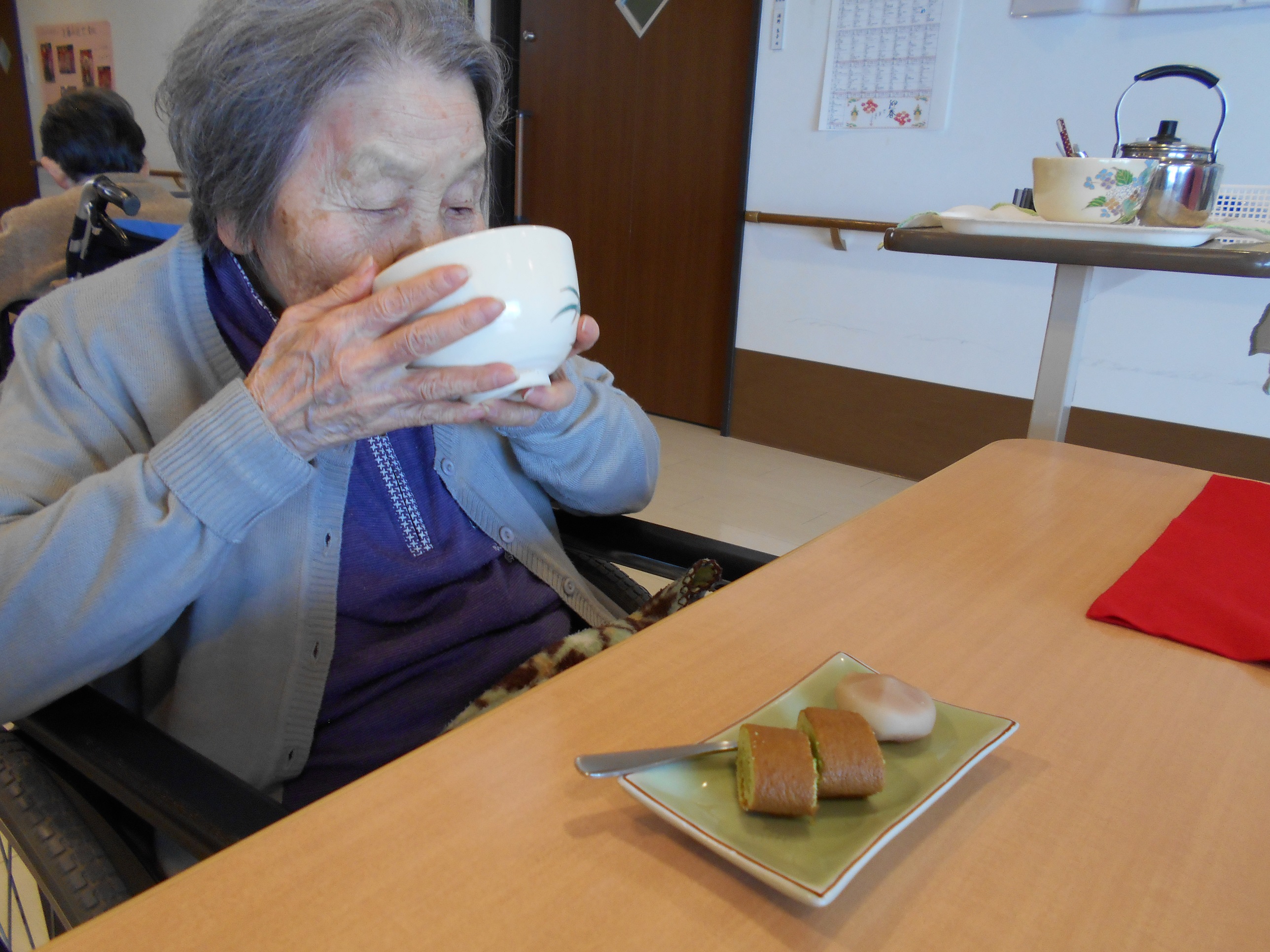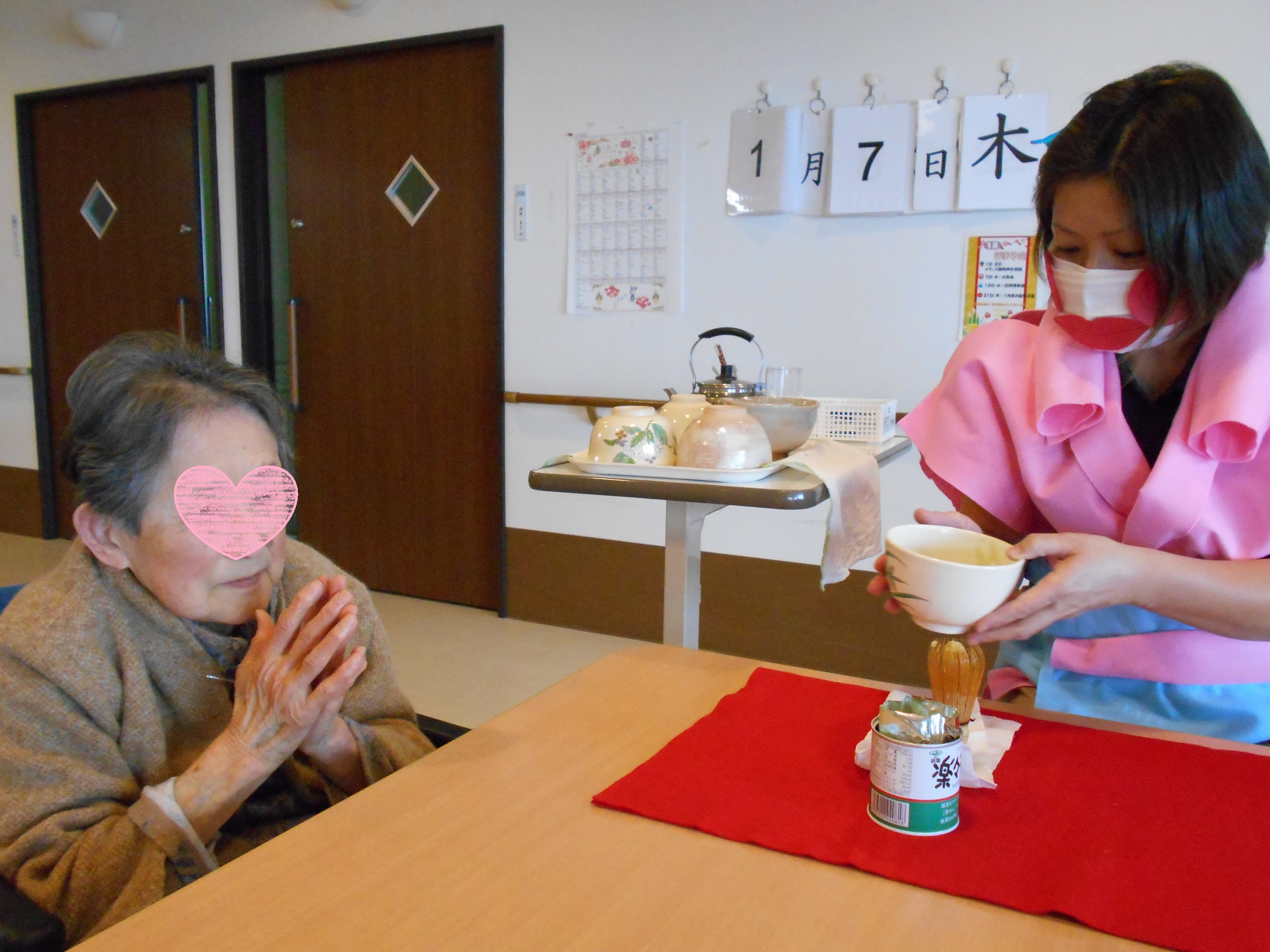 職員がステキ(?)な着物(??)でお茶を点て、ふるまいました。