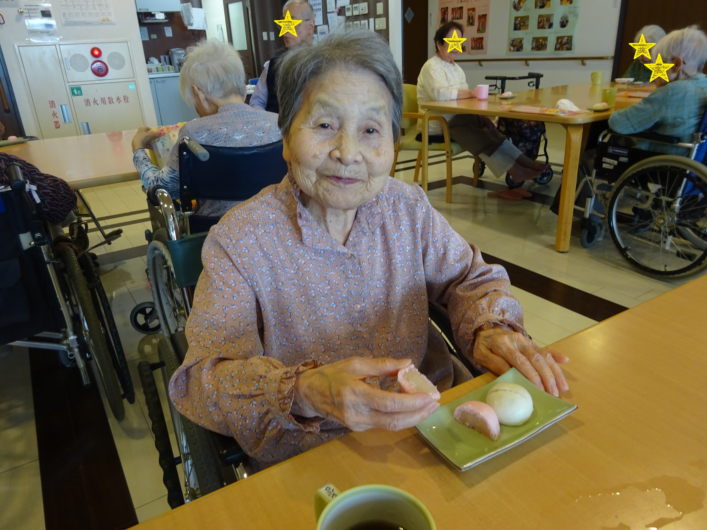 職員からのプレゼントに出し物、紅白まんじゅうでお祝いです♡