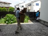 真夏のような強い日差しの中、段ボール等を運んでいただきました。