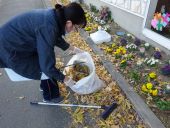 とってもキレイな紅葉を楽しんだあとは・・・落ち葉です。