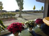 玄関前の花壇のお花を新しく植え替えていただきました。