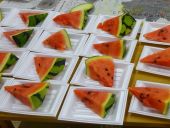 飲み物やお菓子、スイカを準備(⋈◍>◡<◍)。✧♡