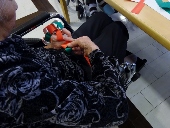 クリスマスカラーの飾りを入居者様と一緒に作成中です♪