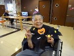 かわいいお菓子を前に仮装した入居者様も満面の笑顔。