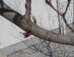 南側の庭に植わっているハナミズキの木にも小さな芽吹きを見つけました。