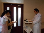 双葉胃腸内科クリニックの中曽根 豊先生と看護師の長壁さんがお見えになり診療してくださいます。