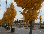 道路沿いの銀杏並木がとても綺麗に色づいてるのが、秋の深まりを物語っていますね。