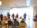 お待ちかねの演奏では、沖縄民謡の「安里屋ユンタ」を振り付けを教えて下さり入居者様も参加。