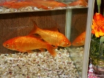 メディス藤岡の玄関ホールでは、涼しげな水槽の中で2匹の金魚が優雅に泳いでおります。