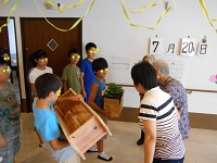 そのご縁で7月20日に小学生の皆さんが育てたサルビアの苗とフラワーボックスを届けて下さいました。
