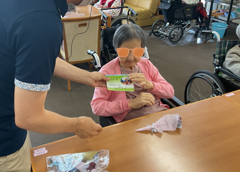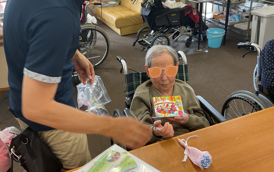 皆さんにバースデーカードとクラフトフラワーをプレゼントしました。