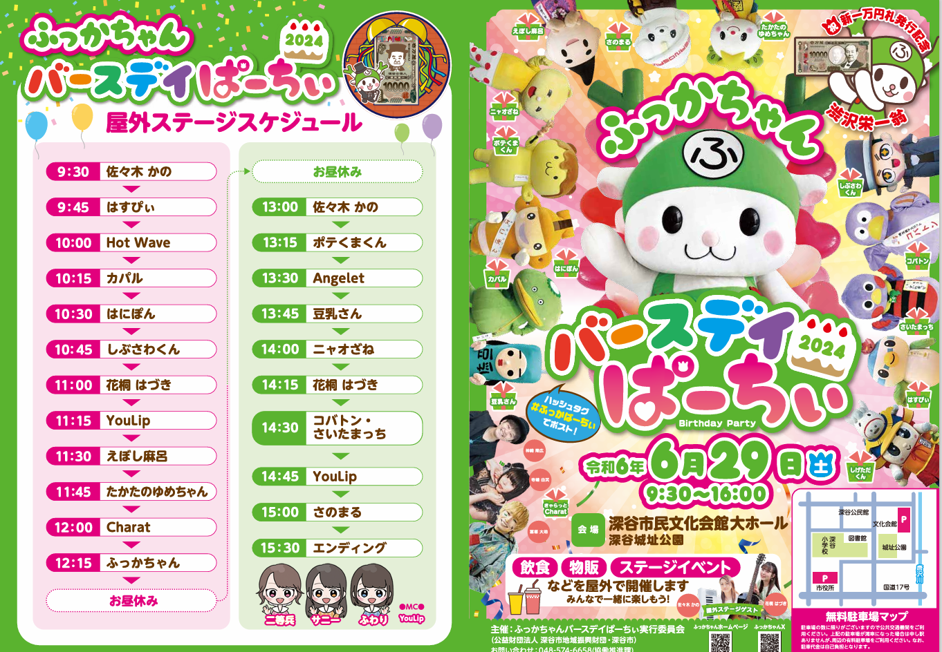 施設のある深谷周辺の週末イベントを調べていたところ「ふっかちゃんバースデイぱーちぃ」を発見!