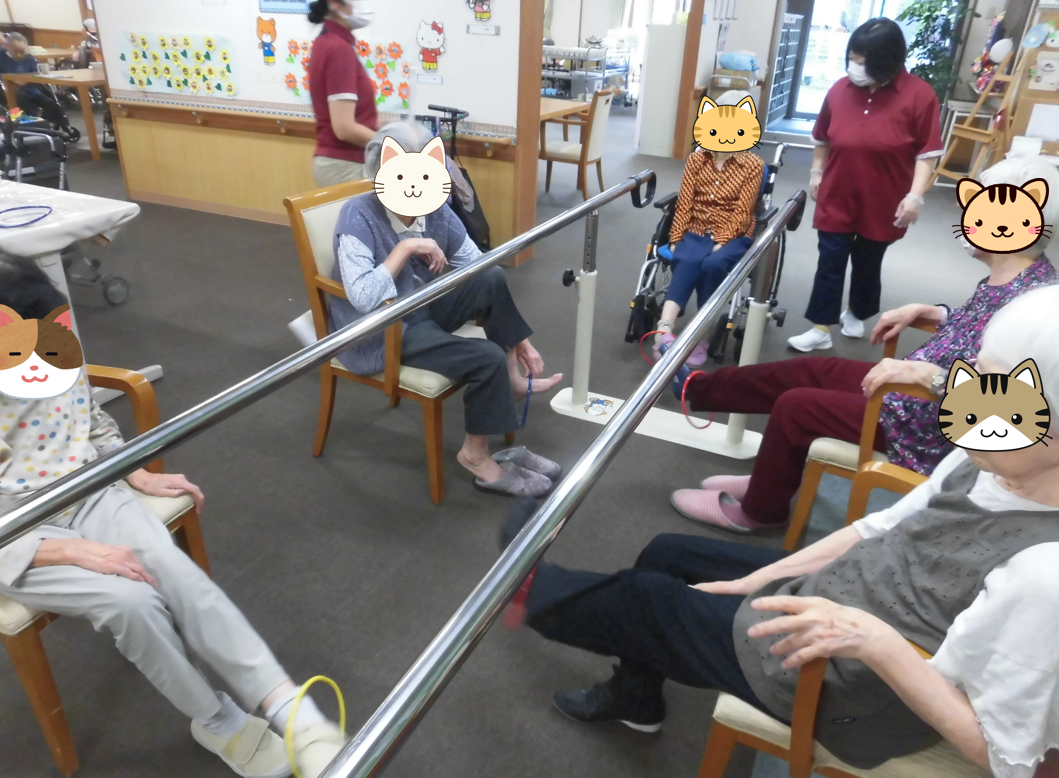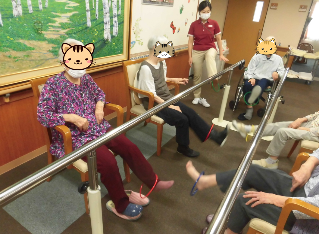 先日、理学療法士の方と入居者様が何やら輪投げ用?の小さい輪っかを足で回していたのでそのようすを紹介します。