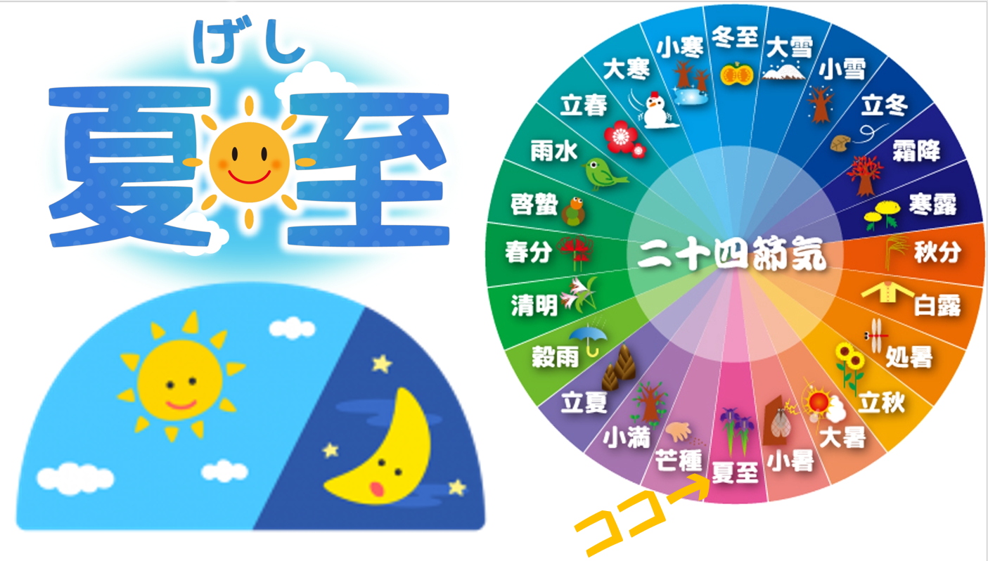 「夏至(げし)」は、「二十四節気」の一つで第10番目にあたります。