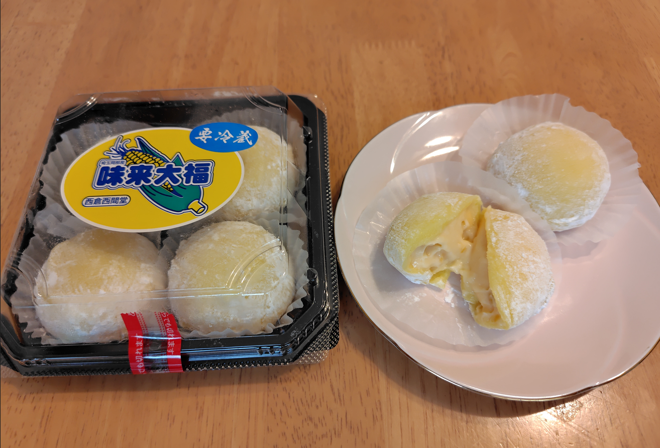 味は、カスタードクリームとスイートコーン双方の甘みが絶妙に調和され、かみしめるとより強くスイートコーンの味が際立って感じられました。餡子の大福とは違ってこれはこれで美味しいと思います。
