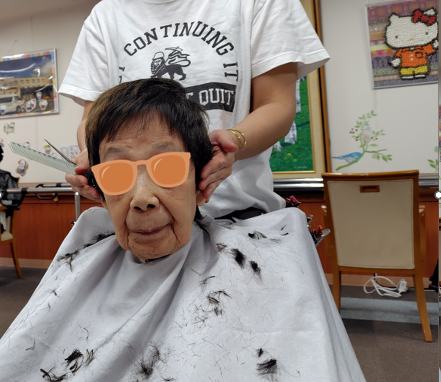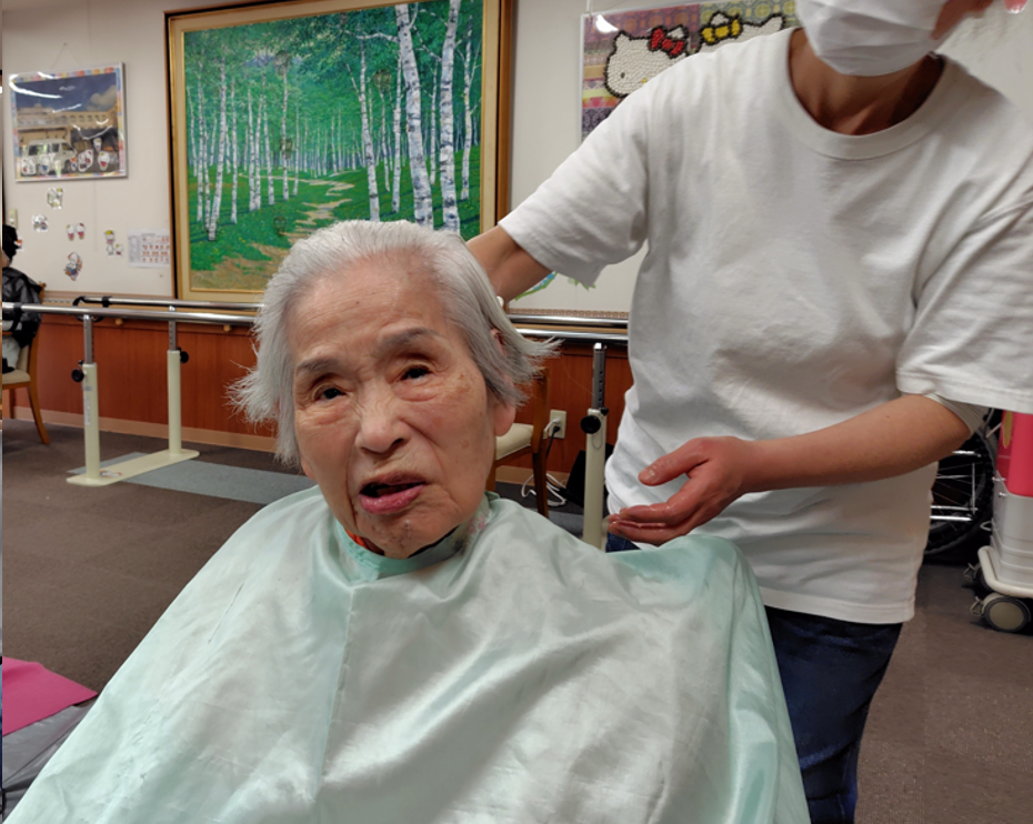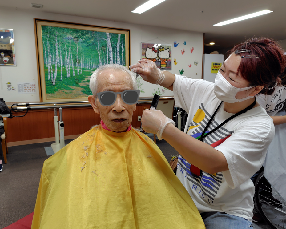 面倒なので毎月丸刈りにする方やカットだけでなく髪染めで見た目もより若々しくなられる利用者様もいらっしゃいます。