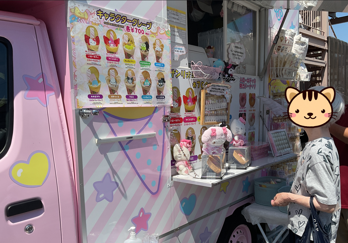 また、サンリオキャラクターを好きな方も多かったようなので、サンリオカフェワゴンで記念写真撮られるなどクレープを食べる以外にも楽しまれていました。