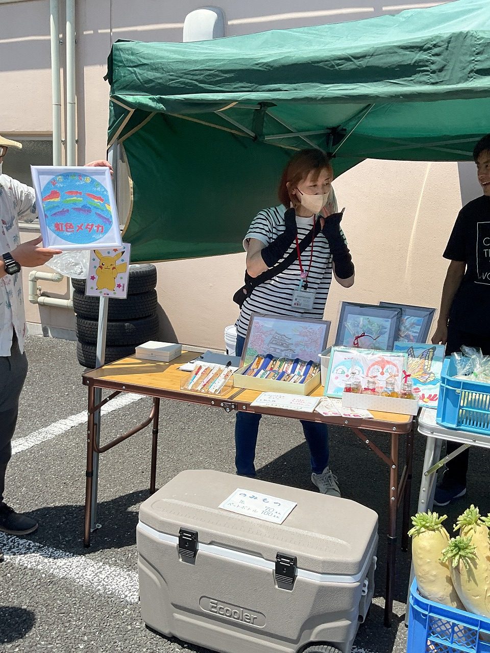 ”メディス藤岡・メディス深谷のスペシャルイベント”と同日、就労継続支援B型事業所・虹色様ともコラボしてイベントを盛り上げていただきました! メダカすくいやメダカ関連商品販売、採りたて野菜販売などをやっていました。