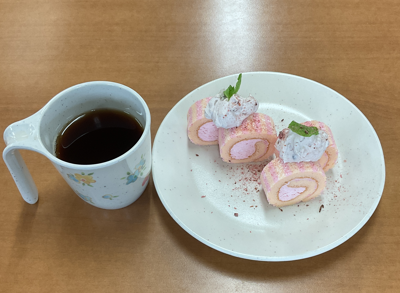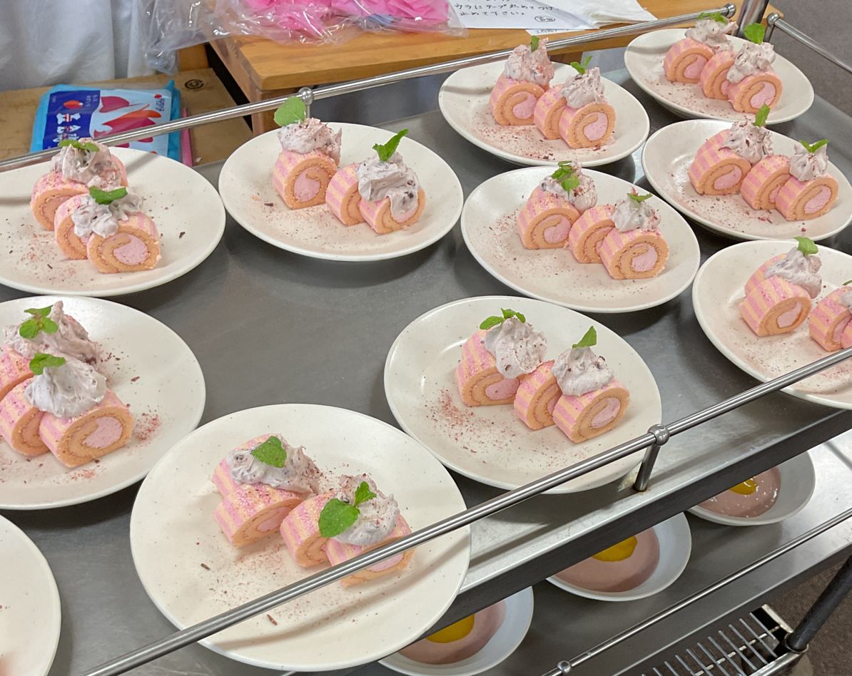 今月は”さくら香るイチゴのロールケーキ小豆クリーム添え”でした(^^)