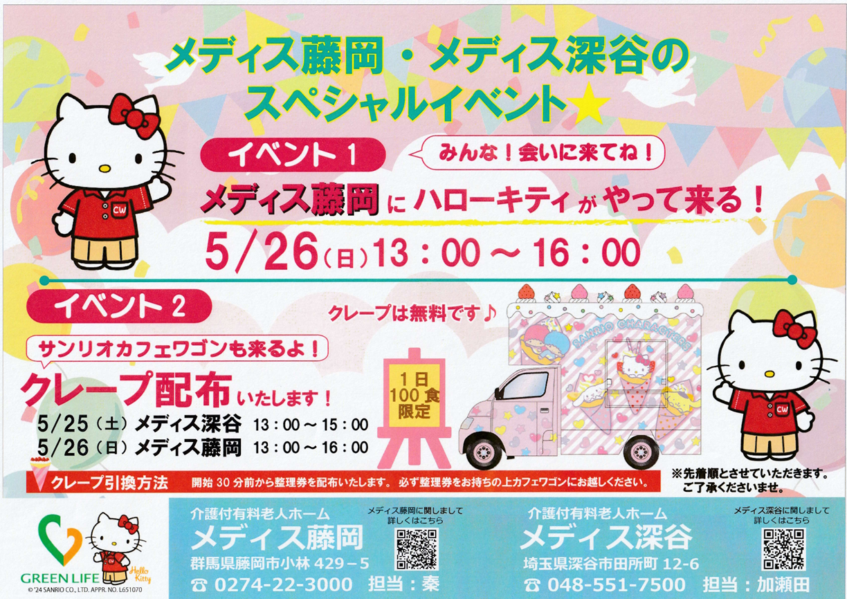 ※メディス藤岡のイベントは5/26です。こちらはキティちゃんも来ます。