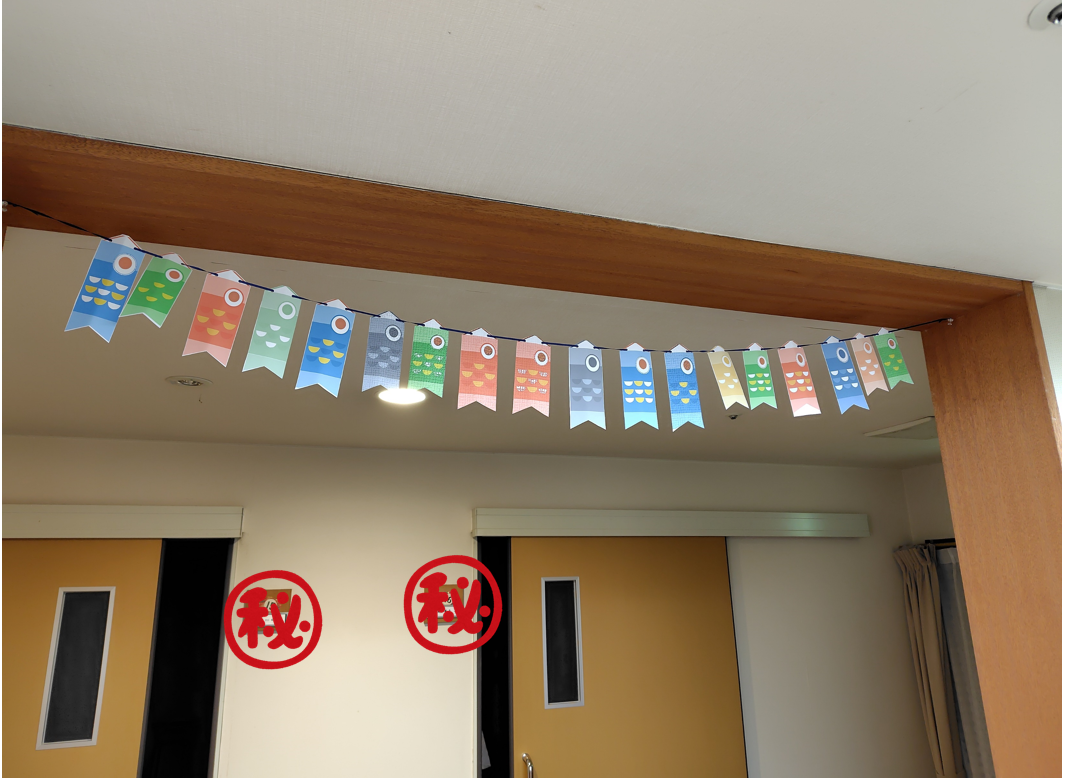 施設内のガーランドをこいのぼりバージョンに変更しました!