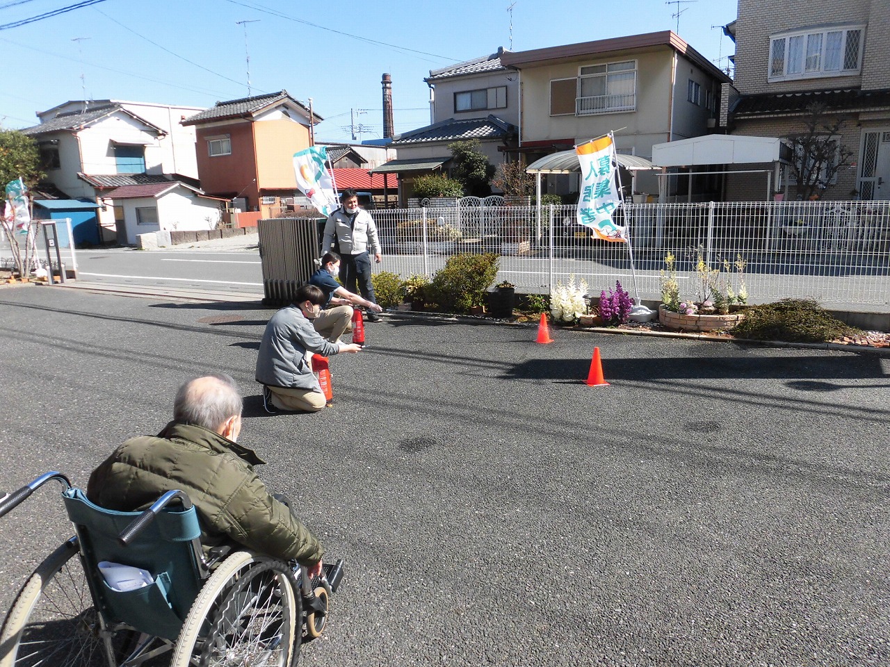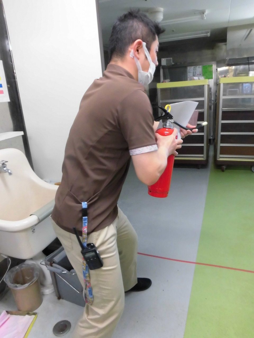 警報発生から火災場所の確認、避難経路の確認及び利用者様の誘導、消化訓練などを行いました。