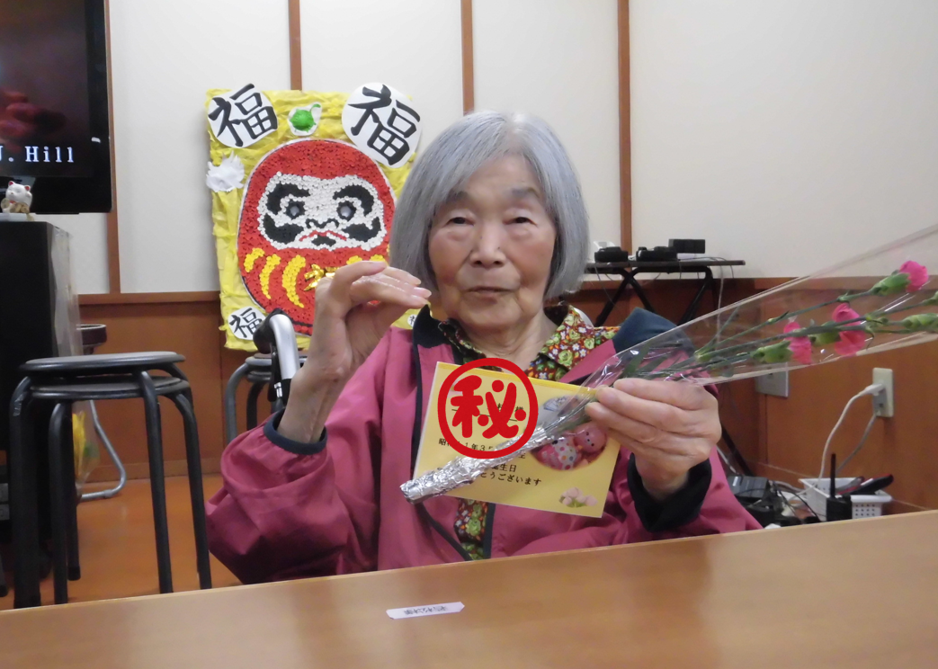 みんなで歌を歌い、ケーキを食べてお祝いしました。