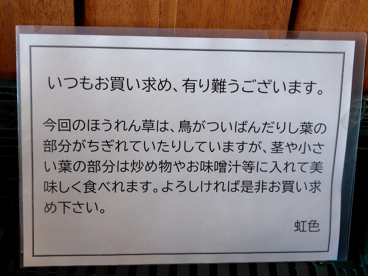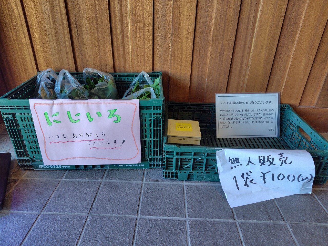 ほうれん草やキャベツ、ニンジンなど取れたて野菜が置かれていることがあるようです。