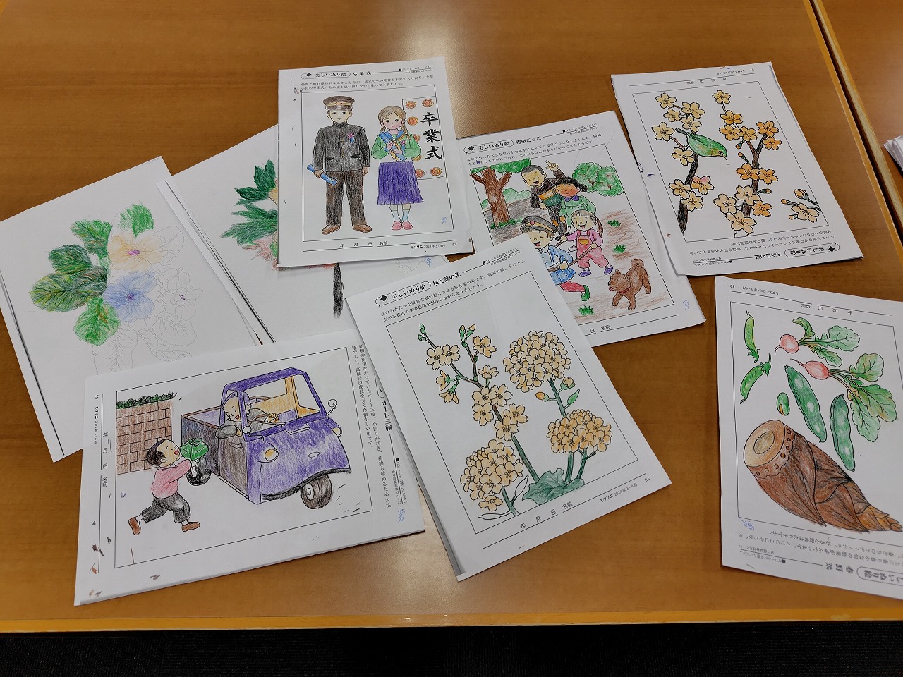 何やら職員がさくらの花??の絵をいくつか切り取っていました。