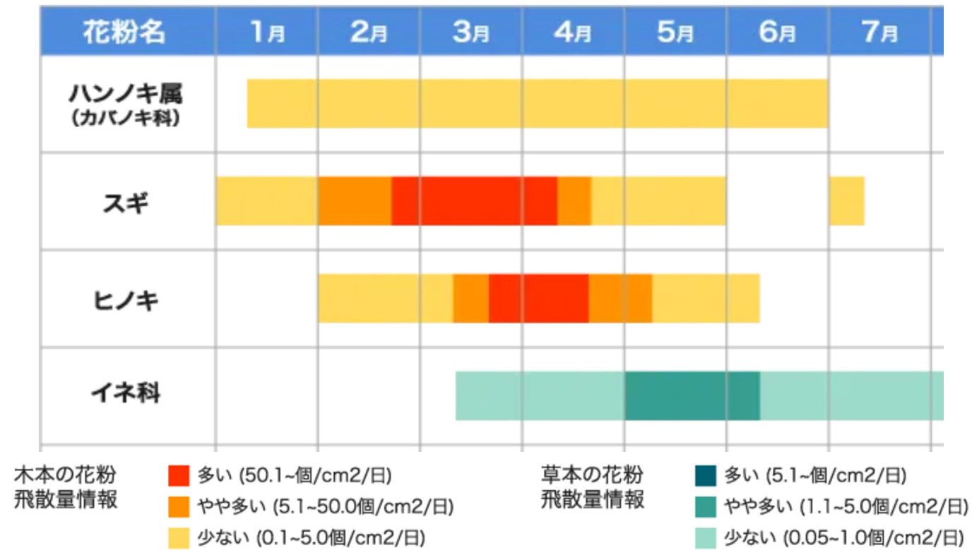 ※花粉カレンダー情報はアレジオンHPより一部引用(https://www.ssp.co.jp/alesion/hayfever/calendar/)