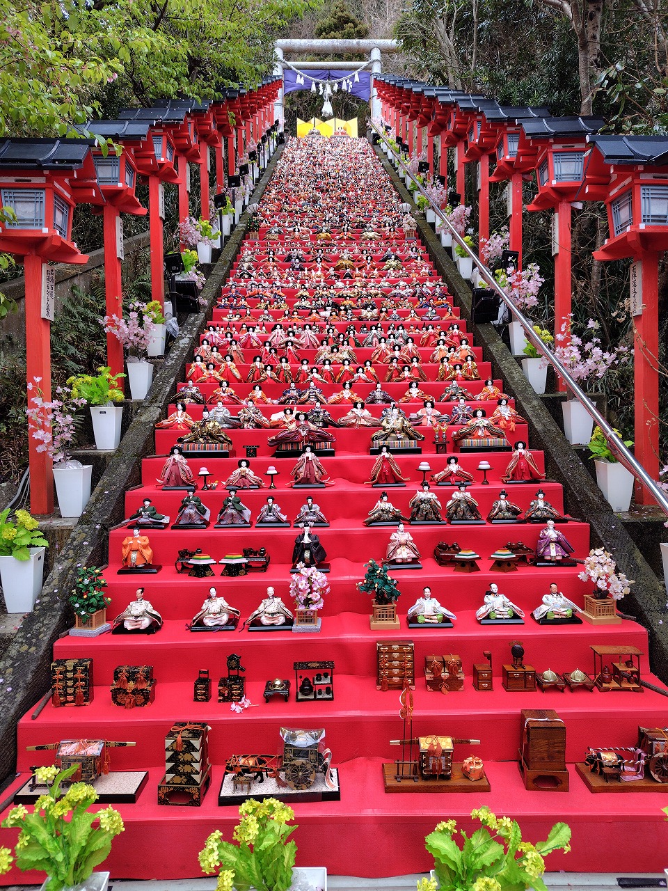 遠見岬神社の石段を始め、市内あらゆるところに30000体のひな人形が飾られていたとか( ^ω^)・・・