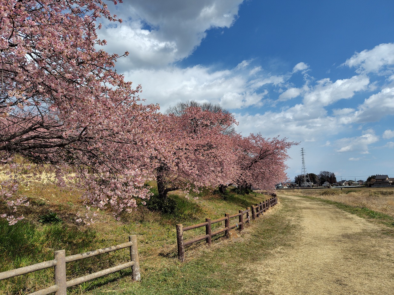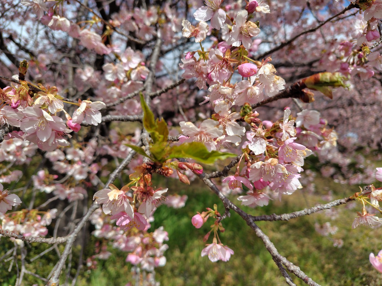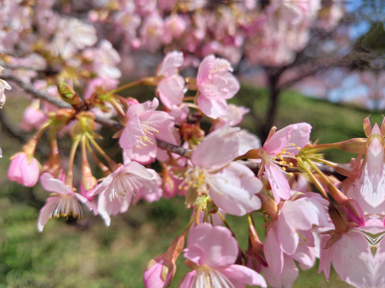 2週間程前に見に行って開花していた河津桜を確認してきました。