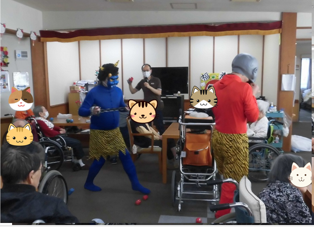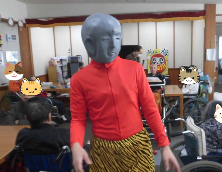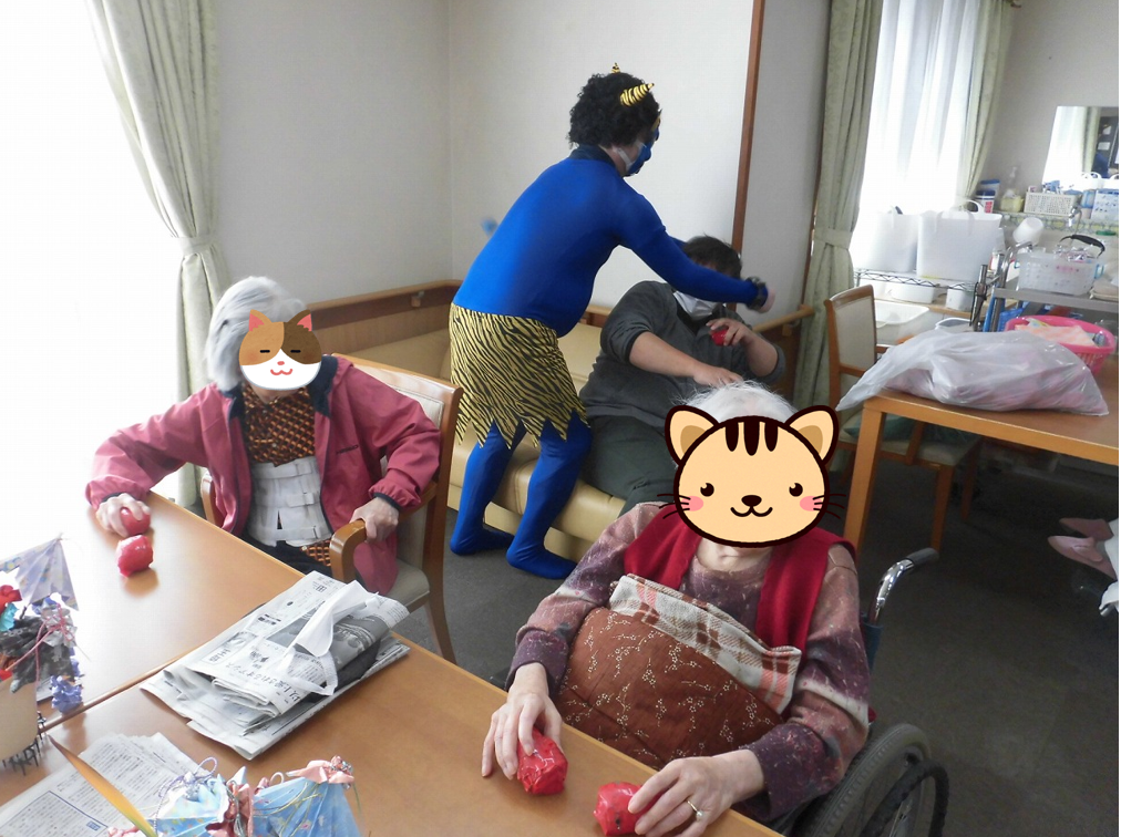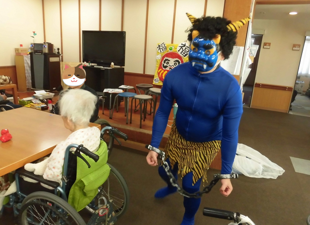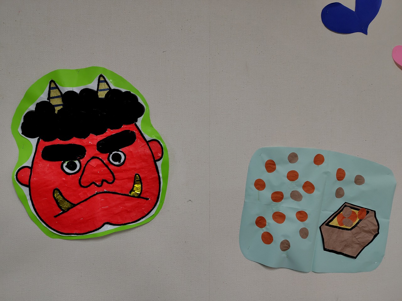 施設では、節分を前に壁飾りで鬼が登場です(@_@)