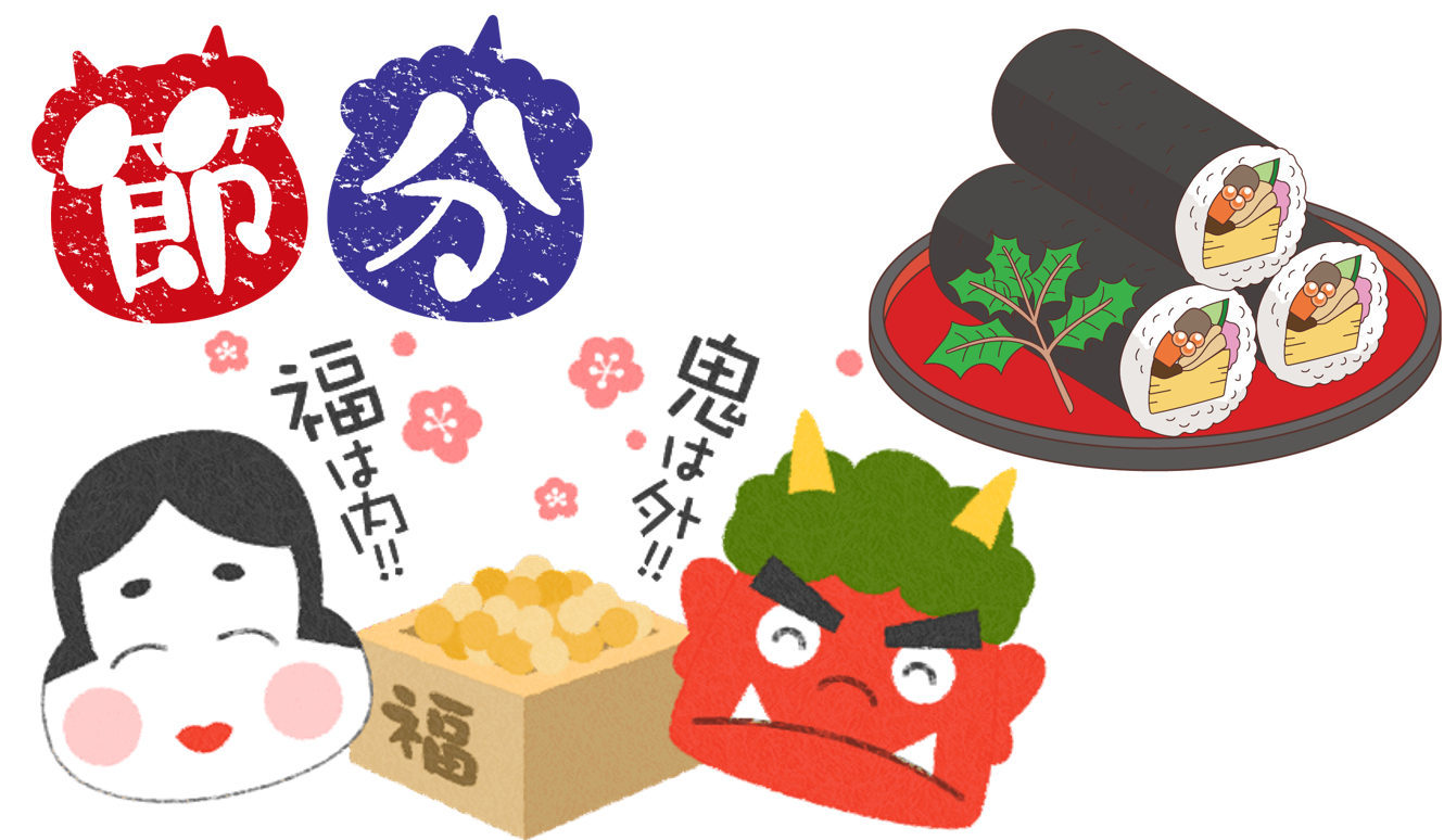 また、この日に「恵方巻(えほうまき)」を恵方を向いて食べると縁起が良いとされています。この習慣はもともと大阪を中心として発祥したものとのこと。ちなみに今年2(令和6年)の恵方は「東北東」のようです。