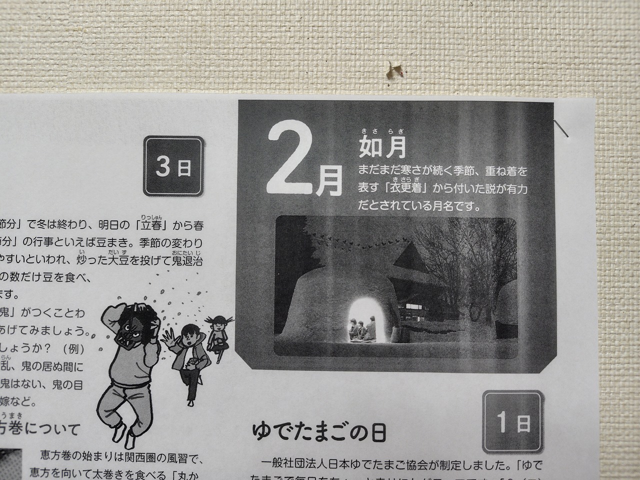 施設の壁紙に今日は何の日コーナーを作っており、2月の情報に更新しました。